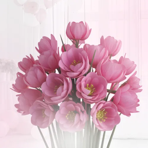 • Средний - роза - 9 шт., гипсофила, упаковка, лента