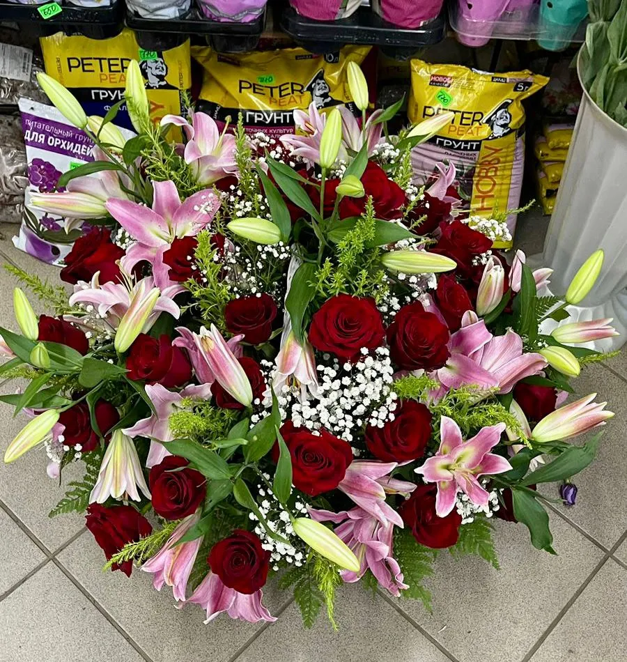 Cостав данной композиции может незначительно поменяться, из-за отсутствия некоторых позиций или сезонности цветов.