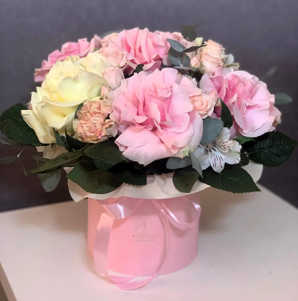 Шляпная коробка с французскими розами в нежных тонах — это идеальный подарок для истинных ценителей красоты и романтики.