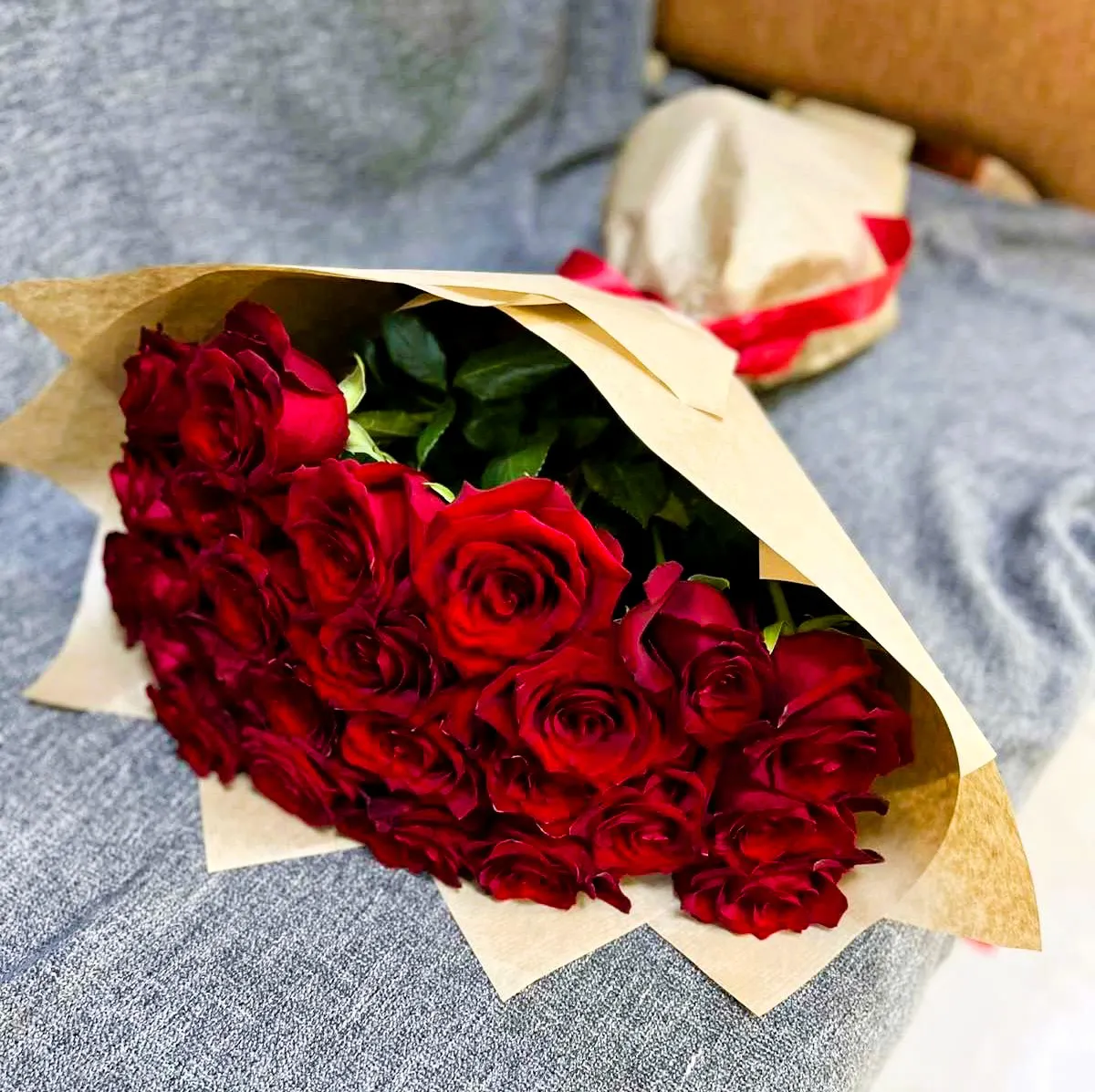 Каждая роза в этом роскошном букете, словно поцелуй, насыщенный ярким цветом и утонченным ароматом