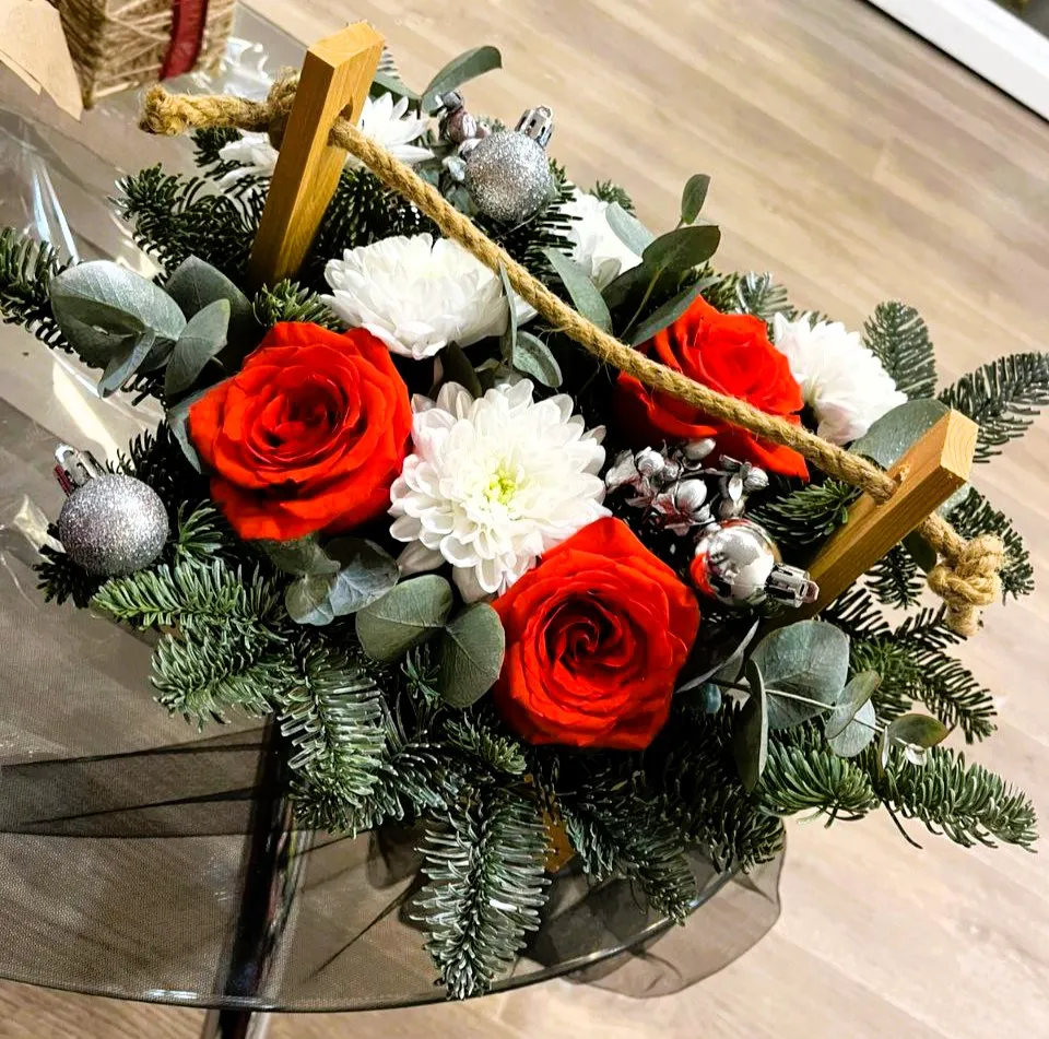 Новогодняя коробка с цветами и нобилисом станет отличным подарком, который поднимет настроение и создаст волшебную атмосферу праздника. Позвольте своему творчеству разгуляться и радуйте себя и близких прекрасными цветочными композициями!